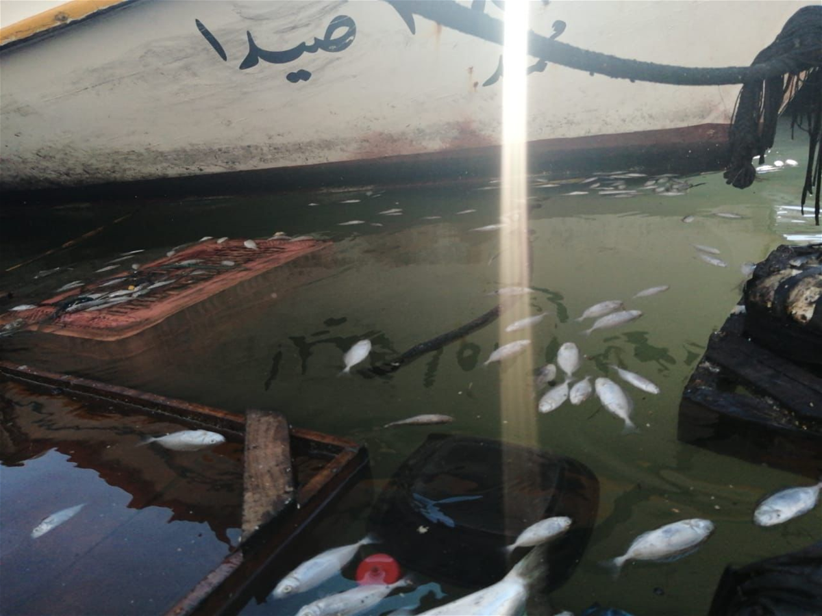 العثور على كميات من الاسماك النافقة في ميناء الصيادين في صيدا، وذلك نتيجة تلوث مياه البحر وتوقف محطة التكرير عن العمل.