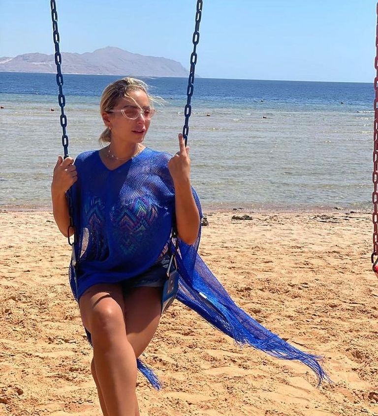 ونشرت الفنانة ريم البارودي صورًا، ظهرت فيها مرتدية "كاش مايوه" شفاف أزرق اللون، جالسة على أرجوحة وفي خلفيتها شاطئ البحر.