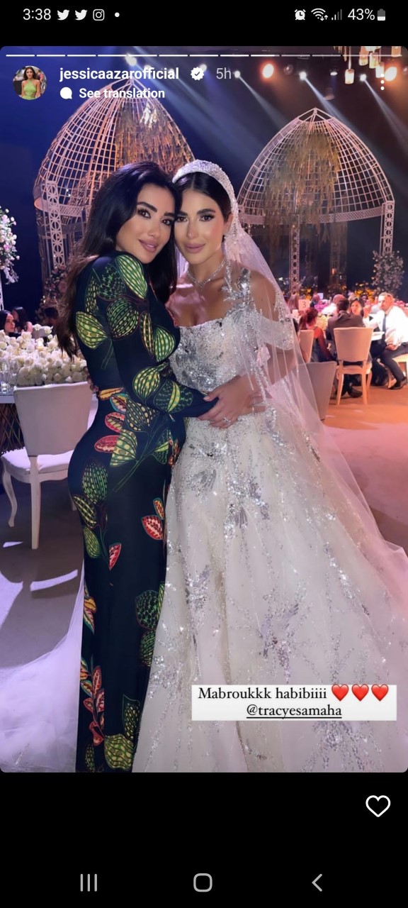 كما ظهرت في أحد الأعراس وهي ترتدي فستانا ضيقا طويلا أظهر أيضا حملها.