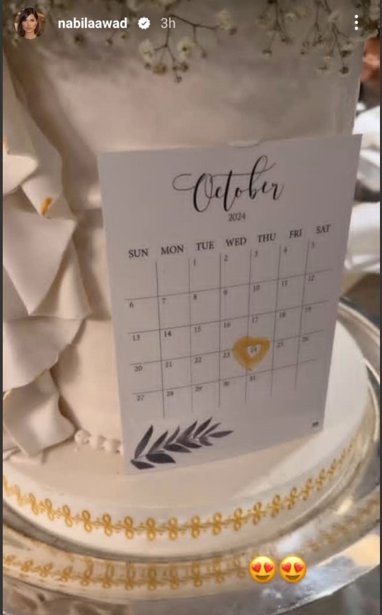 ويبدو ان يعقوبيان كانت تحتفل بزفاف عواد، حيث ظهر قالب حلوى عليه صورة العروسين.